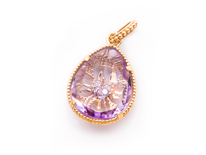 【卸】K18PT Rouge ワイヤーラッピングチャーム アメジスト(Rw215)[送料別/クーポン除外品] 13.7x10.7x10.1mm前後 ご注文ページへ / 在庫(1) ログインして価格を見る
