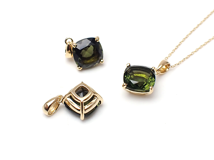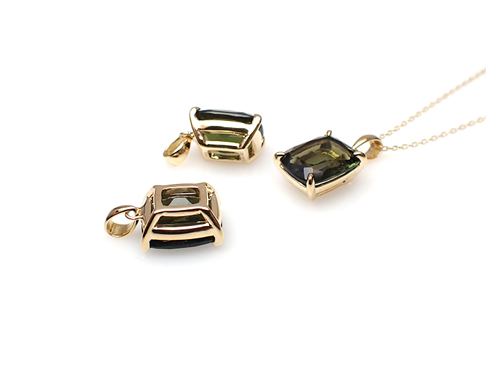 【卸】K18PT クッションカット モルダバイト[送料別/クーポン除外品]