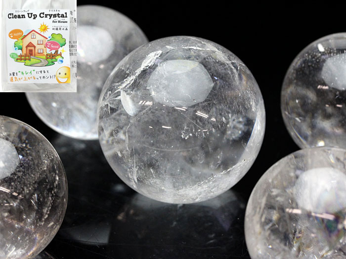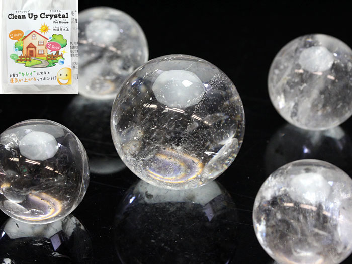 【卸】パッケージ クリーンアップクリスタル 水晶丸玉 5個セット