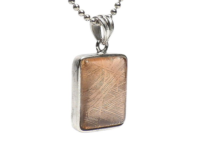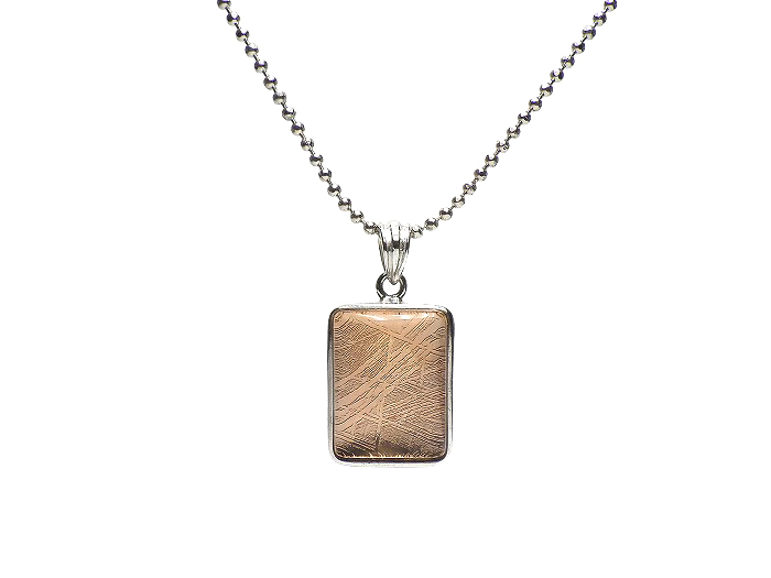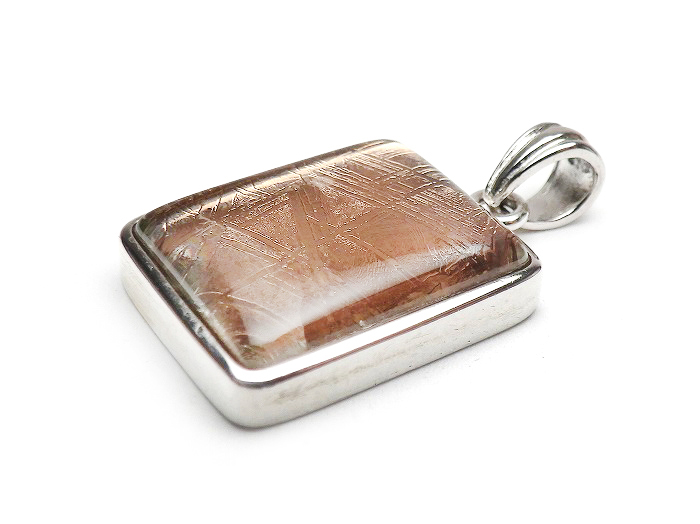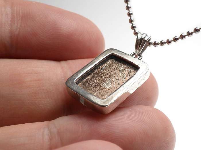 【卸】SV925 ペンダントトップ 片面ふっくらスクエアカット 鉄質隕石(メテオライト)ピンクゴールド