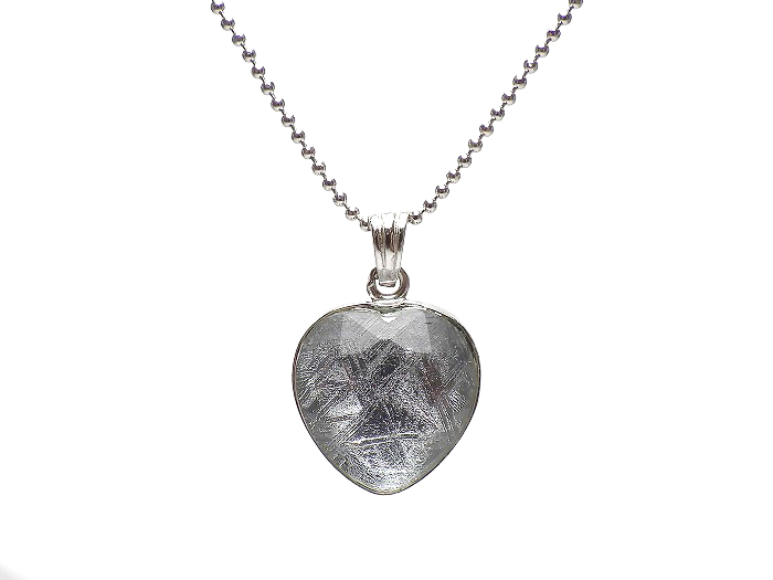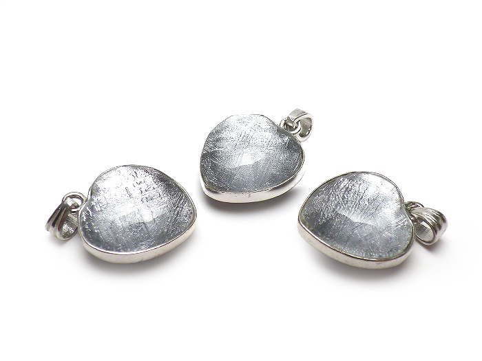 【卸】SV925 ペンダントトップ ふっくらハートカット 鉄質隕石(メテオライト)