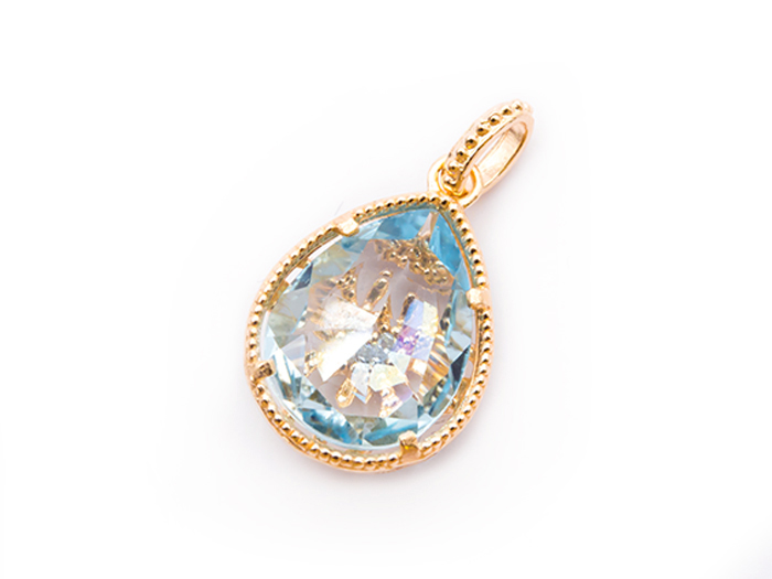 【卸】K10 Luxcia(ルクシア) チャーム ティアドロップ ブルートパーズ 10金 (516)[送料別/クーポン除外品] 10×8mm前後