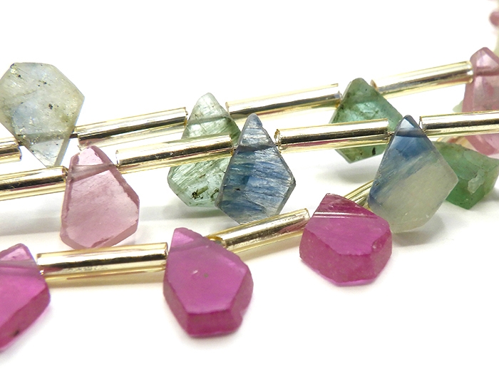 【卸】1連 ラフスライスカット マルチカラーサファイア(21粒前後) 5x7mm〜7x9mm前後